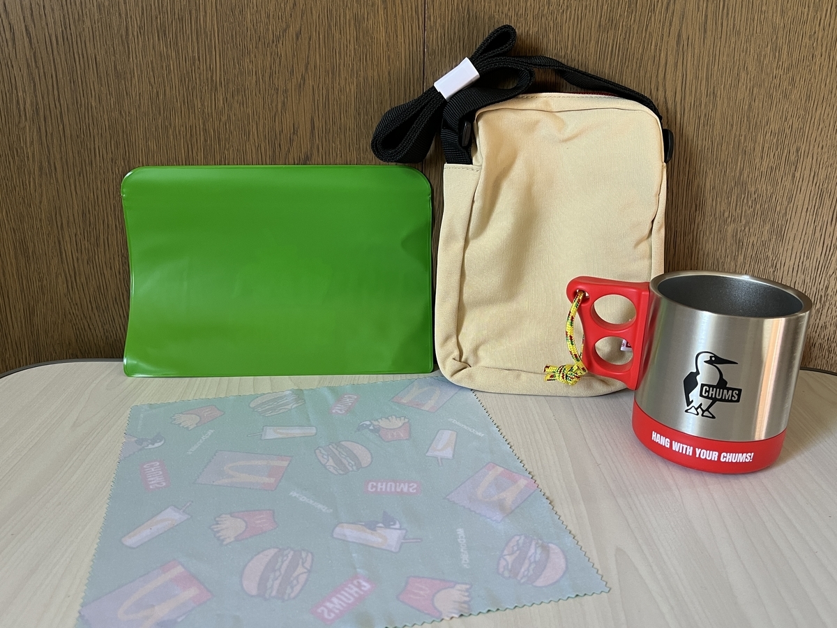 帰宅後、中を開けてみました。内容はもちろん事前にわかっていますが、わくわくですね。内容は以下です。今年はCHUMS(チャムス)とコラボしています。