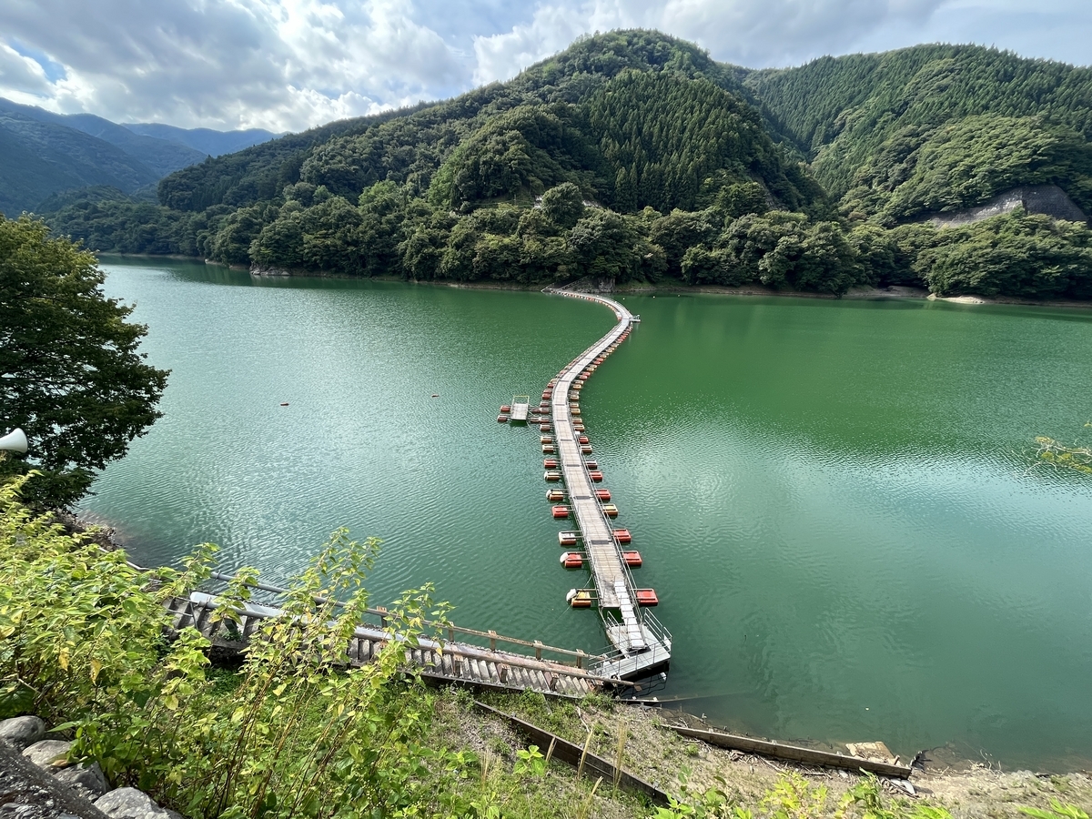 ダムができる事で水没し、対岸へのアクセスを改善する為に設けられたのが浮橋。奥多摩湖にかかる浮橋は下記の2つです。