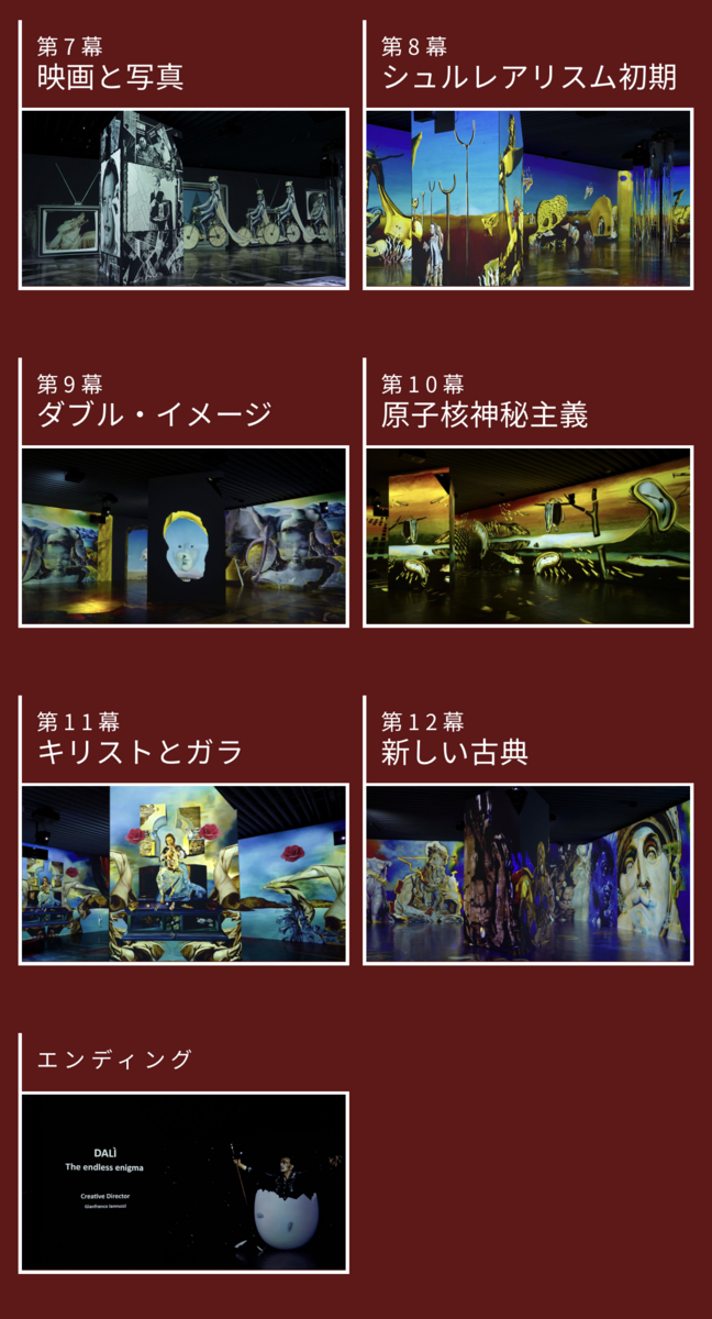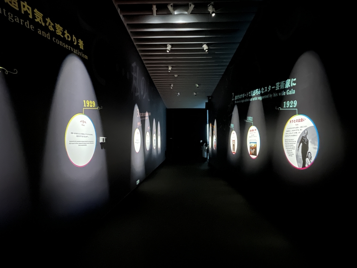 ダリのおおまかな生い立ち、歩み、軌跡を見ながら、メインの映像ゾーンへ歩みを進めましょう!