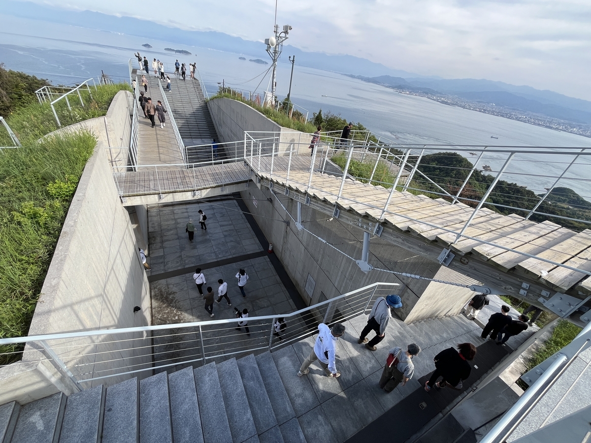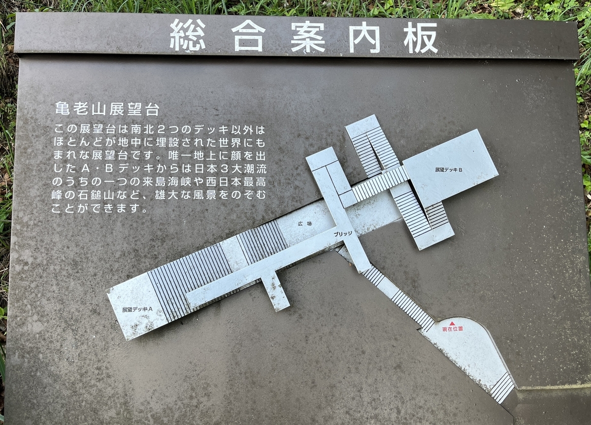 まず、設置環境が特異です。南北に2つの展望デッキがありますが、それ以外の部分はほとんど地中に埋没している構造なのです。地中といっても、ここ自体が山頂なので眺めがさえぎられる事はありません。左上が展望デッキAです。