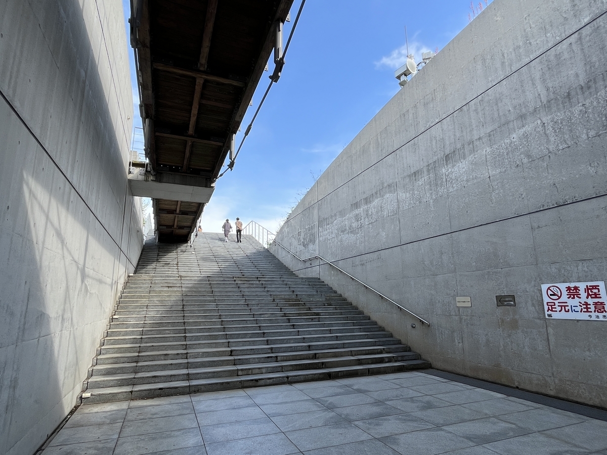 長い道の先にあるのが展望デッキBで、展望デッキAとBはつながっています。なかなか、どこに立っても全体像が見えないような特殊な構造をしています。