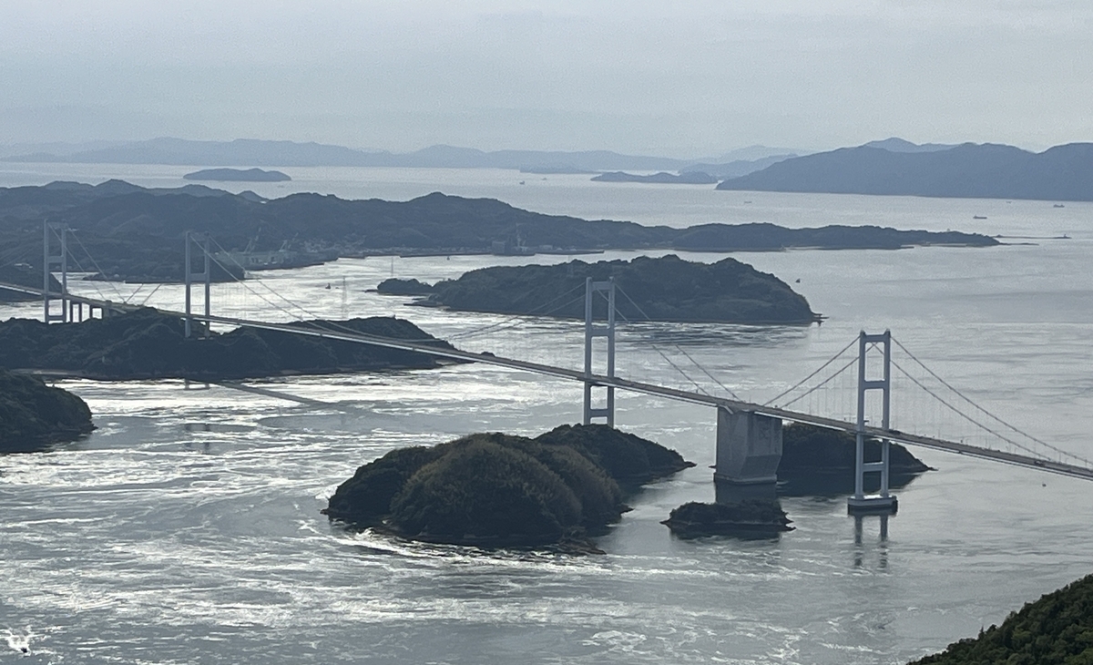 しまなみ海道に行って来ました。本州・尾道と四国・今治とを結ぶ景色最高の道路です。距離はありますが、自転車で楽しむ方も多いですね。つながっている島々の中でも最も四国側に位置する大島には、亀老山展望公園(きろうさん)があります。そこからの来島海峡及び来島海峡大橋の眺めが超絶なんです!!